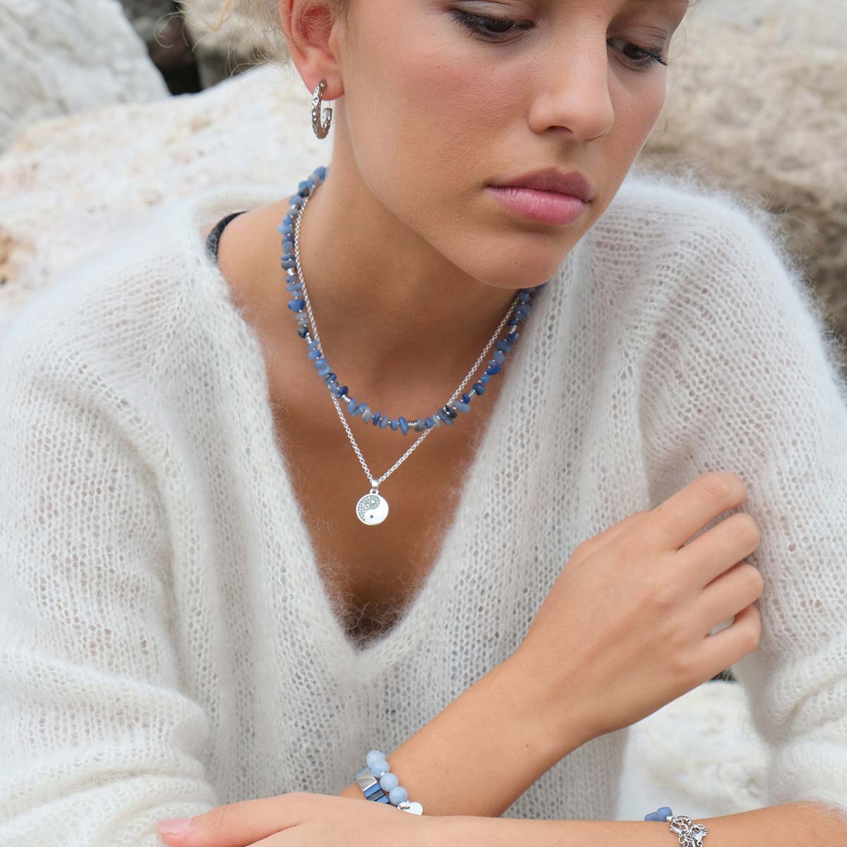 Ketting met stoere yin-yang hanger met fonkelende kristalstenen in sprankelende zwarte diamant. Op de achterkant staat “Balans is iets dat je creëert” gegraveerd.”Silverplated”