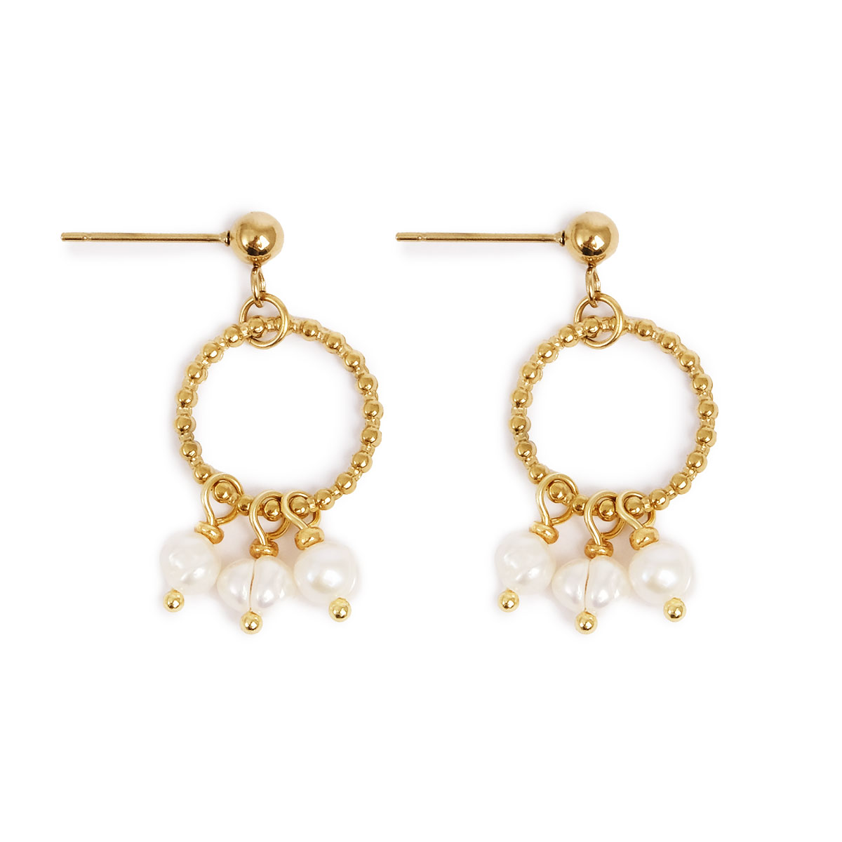 Deze Pure Steel kleine oorbellen zijn versierd met kleine zoetwaterparels en geven een elegante en tijdloze uitstraling. Nikkelvrij en goldplated.