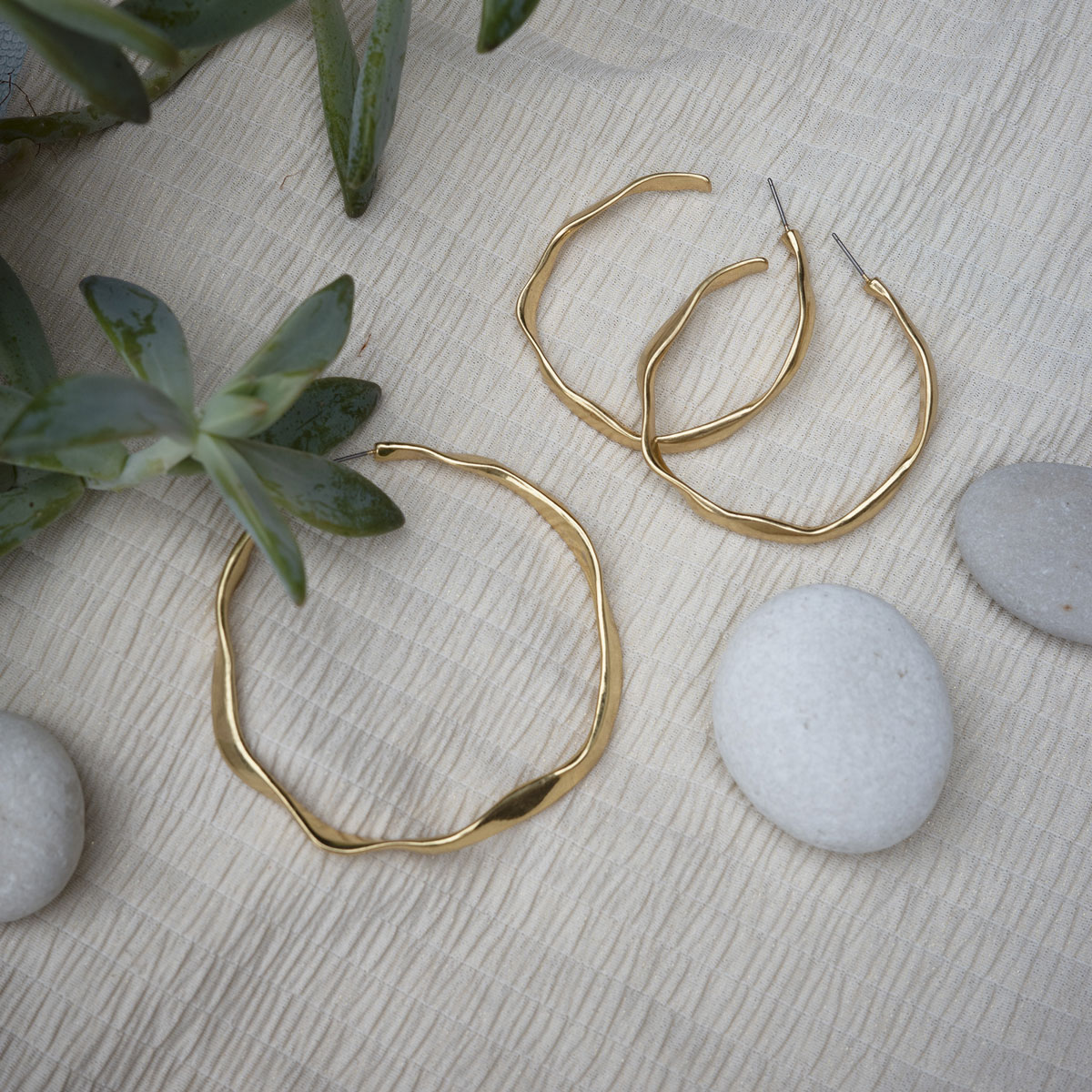 Grote “sculptured” oorbellen. Grote oorbellen met een licht oneffen en organisch gevormd oppervlak. Prachtige statement-achtige oorbellen of het nu voor een feestje is of voor dagelijks gebruik. ” Goldplated”